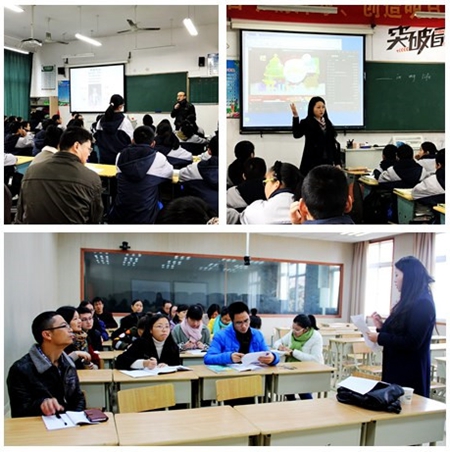 俞朔晗老师带去了题为《香菱学诗》的中国古典小说鉴赏课,通过朗读将香菱在大观园中学诗的“苦”和“乐”直观地表现在学生眼前,通过品读细节将一个美丽鲜活的生命影象印在了学生心里。夏欣老师带去的是一堂《A year in my life》英语阅读课,引导学生以节日为线索学会总结课文的标题,再通过有痕阅读引导学生掌握细节阅读技巧,最后学会利用范文结构仿写自己“最喜爱(记忆深刻的)的月份”。