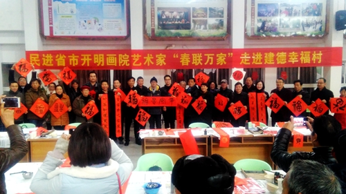 1月12日,省委会组织浙江开明画院、杭州开明画院(筹)、建德开明画院十八位书画家走进建德市乾潭镇幸福村,举办“春联万家”公益活动,为村民送去新春的祝福。省委会社会服务处处长韩依群、杭州市委会专职副主委谢春凤、建德市委会主委叶强参加现场活动。浙江开明画院常务副院长沈曙主持启动仪式。