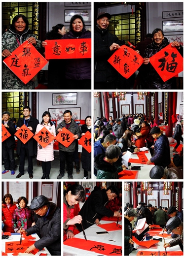 活动当天虽然天气寒冷,但现场却暖意浓浓。书法家们各怀绝技,楷书、行书、隶书、草书等各有专攻,满足了现场群众的不同需求。一对对吉祥喜庆、墨宝飘香的春联让前来求要春联的百姓欢喜不已,短短几小时内,近300幅春联、1200个“福”字便被抢领一空。一幅幅精彩的书法作品,一句句吉祥如意的春联,为当地群众提前送上了新春的祝福,为即将来临的鸡年春节增添了浓浓的喜庆氛围。