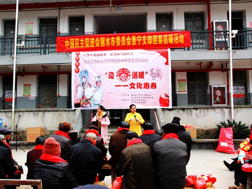 1月24日,民进景宁县支部迎春送暖活动在澄照乡漈头村举行。支部会员与县文联文艺家、县文广出版局工作人员一道,为敬老院老人送上了慰问品,还为老人们送上了喜闻乐见的戏剧桥段,丰富了老人们的文化生活。