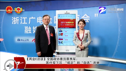 全国政协十二届五次会议已经开幕,在北京的浙江广电全国两会融媒体新闻中心里,全国政协委员、浙江大学医学院附属邵逸夫医院院长、民进浙江省委会主委蔡秀军接受了新蓝网-中国蓝新闻客户端《两会E访谈》的专访。