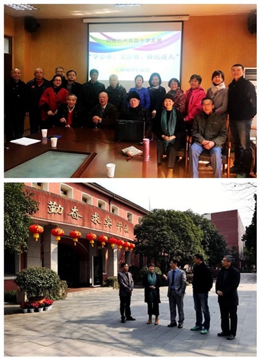 杭高校长尚可、书记张旭光陪同谢春凤副主委一行参观了杭高的校园,瞻仰了中国民主促进会的主要缔造人和首位中央主席、曾任浙江省立第一师范学校(杭高前身)校长、浙江省教育厅厅长的马叙伦铜像。