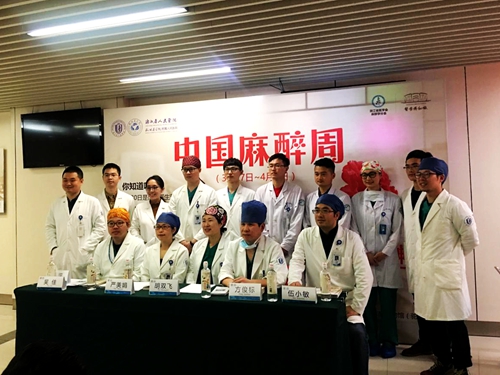 “大部分人都认为麻醉不过是打一针药罢了,其实一台手术的成功很大程度上取决于外科与麻醉医师明确的分工和良好的配合,特别是当患者出现一些风险时,麻醉师和主刀医生一样都是一线的主力军,说他们是生命的守护神一点不为过。”胡双飞教授在接受浙江电视台、都市快报等媒体采访时介绍说,“其实我们麻醉科所做的工作有很多。我们需要通过一系列的宣传宣教来提升普通群众对麻醉的了解,消除患者以及家属对麻醉手术的疑虑和恐惧,从而更好地配合治疗。本次中国麻醉周活动给我们提供了一个很好的平台,让我们麻醉科医生从幕后走到台前,面向公众科普麻醉医学知识,宣传无痛理念,推进舒适化医疗的深入实施。”