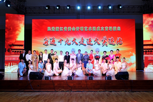 中共浙江省委统战部常务副部长金长征,浙江省文化厅党组成员、副厅长刁玉泉,浙江省各民主党派省委会领导参加仪式,见证民进浙江省委会开明艺术团的诞生。民进浙江省委会主委蔡秀军,副主委谢双成、张宝珍、王滨梅参加仪式,省委会专职副主委刘毅主持仪式。