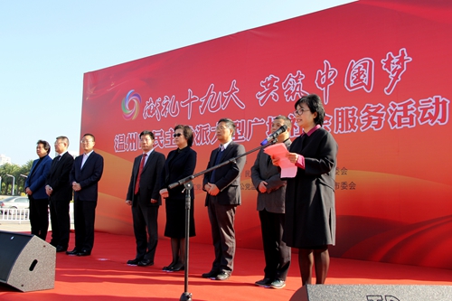 11月19日,由中共温州市委统战部、民革温州市委会、民盟温州市委会、民建温州市委会、民进温州市委会、农工党温州市委会、致公党温州市委会、九三学社温州市委会联合主办的“献礼十九大•共筑中国梦”——温州市民主党派大型广场社会服务活动在世纪广场举行。此次活动是温州市统一战线深入践行十九大精神,各民主党派发挥人才荟萃、智力密集的优势,服务民生,提高广大民主党派成员的社会责任意识的一项重要内容,来自各民主党派的医生、律师、专业科技人员、文艺工作者等近200人参加活动。