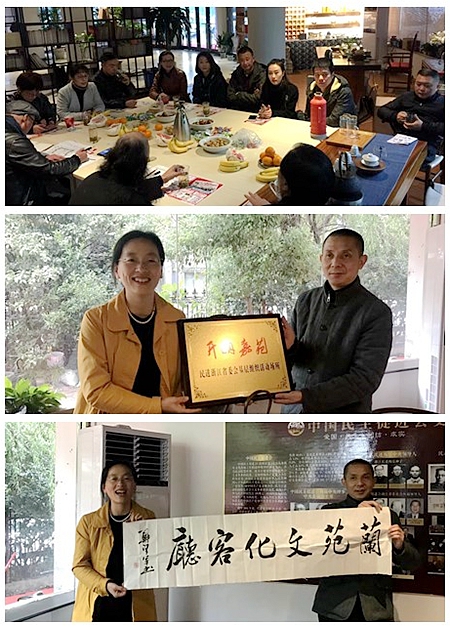 民进省委会组织处副处长、省直工委办公室主任林晓燕就十九大提出的新思想、新使命、新矛盾、新要求等与大家一同进行了学习与交流,并为民进浙昆支部“开明嘉苑”授牌,赠送了民进会员郑梁军为兰苑文化客厅题写的书法作品。