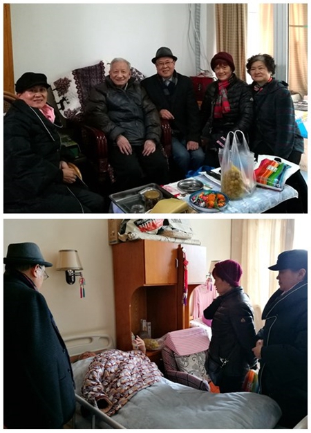 2018年即将到来,12月23日,民进浙医二院退休支部主委陶玉娟,副主委柳子明,支委童征峻、陈建裕赶赴医院、老人公寓和会员家中,看望王兰生、黄汝英、高启文、唐梅筠、黄志云、兰湘筠、包玮等老会员。