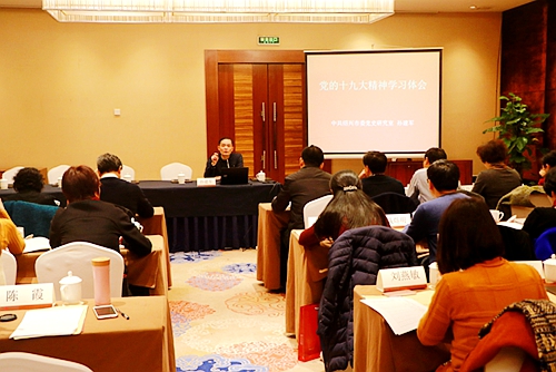 上午的学习会由吴勤波副主委主持。市委会特邀市党史研究室主任孙建军作党的十九大精神辅导讲座。讲座紧紧围绕习近平新时代中国特色社会主义思想这条主线,分别从“伟大的梦想”“清醒的判断”“新的行动指南”和“治国理政的战略”四个方面,用生动的事例鲜明地诠释了十九大的鲜明主题、习近平新时代中国特色社会主义思想的丰富内涵、党的十八大以来党和国家事业发生的历史性变革、中国特色社会主义进入新时代的重大意义、我国社会主要矛盾变化的深远影响、“两个一百年”奋斗目标、坚定不移全面从严治党的重大部署等内容。