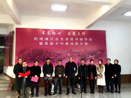 12月26日,“不忘初心、正道上行”民进浦江县总支会员书画作品暨美丽乡村建设图片展在浦江美术馆开幕。展览由中共浦江县委统战部、县文化广电新闻出版局、县档案局、民进浦江县总支主办,浦江美术馆、山明美术院、民进浦江总支机关支部和文化支部承办。浦江县政协主席朱受明,民进金华市委会专职副主委吴瑞成,浦江县委常委、统战部部长张建顺,民进金华市委会秘书长许英姿,金华开明画院常务副院长凌宇冰,民进浦江总支主委、县政协副主席张放远,民进浦江总支副主委、县政协副主席盛丹平,民进浦江总支副主委、县人大副主任朱晓飞等出席开幕式。