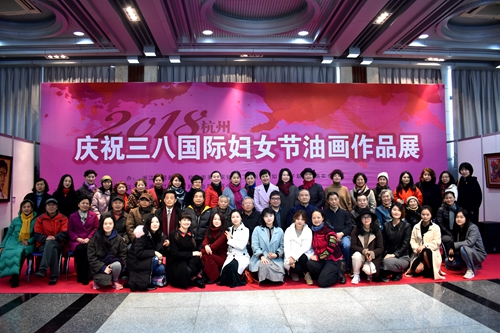 3月8日,“2018庆祝三八国际妇女节油画作品展”在杭州市科技交流馆开幕。本次展览由浙江开明画院、杭州市美术家协会、杭州市女知识分子联谊会画家专委会联合主办,杭州科技工作者服务中心承办,民进浙江省委会妇女会员联谊会、华语之声传媒支持;民进浙江省委会专职副主委刘毅、秘书长姜红雨,杭州市妇联党组书记、主席魏颖,民进省委会妇女会员联谊会副主任张翼宙,杭州市科协、市美协等单位领导及各界嘉宾100余人参加开幕式。