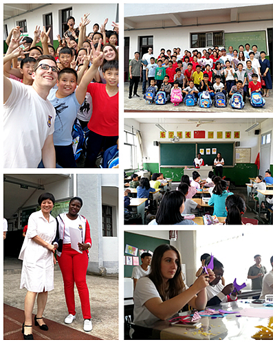 课堂教学结束后,民进浦江县总支部委员许淑芬为四位外国友人颁发了志愿者服务证书以示感谢,并向石宅小学10名困难学生赠送了新书包、新文具等学习用品,鼓励他们好好学习,提前为送上了“六一”节的温馨祝福。