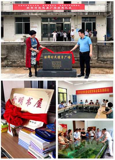 5月25日,民进台州市直属第三支部、黄岩区总支联合开展红色教育文化公益行活动,民进会员创办的凌华爱心志愿者协会与黄岩新华书店、大秦物业有限公司等联合捐建开明书屋、乡村健身广场。