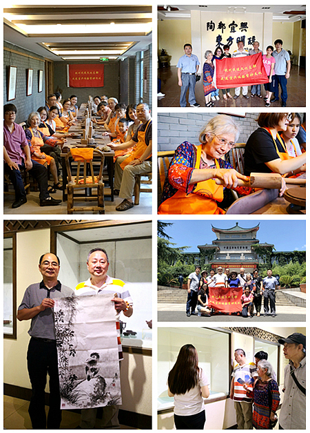 在为期两天的活动中,支部一行参观了华健、范友良两位民进工艺大师的紫砂工作室,大师们精湛的制壶技艺让大家真切感受到了紫砂艺术的独特魅力。支部主委萧鸣和阮文龙等书画家联合创作了书画作品,并刻在紫砂壶上留作纪念,以这种形式将两地文化艺术完美融合,体现了民进一家亲的良好愿景。会员们还参观了宜兴紫砂博物馆,在艺术鉴赏中为此次活动画上了圆满的句号。