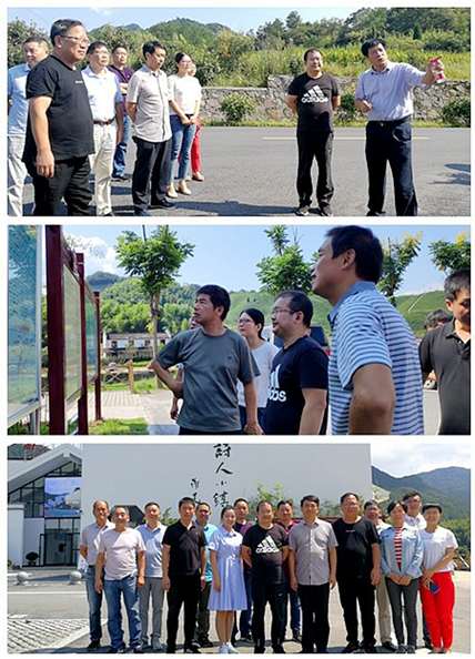 在依山傍水的下湾村作短暂停留后,大家穿过下湾至山丰的新公路,来到大畈乡湃桥村。只见沿途绿树成荫、灌木齐整、花卉烂漫,错落有致,给大家带来了一路美的享受。在湃桥村口,县公路管理段段长蒋正坚向大家详细介绍了浦江县“红色路长制”管养机制,介绍了近几年来交通事业建设的巨大成就和所带来的巨大变化,并带大家沿游步道参观了湃桥村和南山村的独特风景。湃桥村处于大小姑源溪流叉口,南山村则素以干净整洁而闻名。南山村在穿越村庄的双姑溪上筑了堰坝,溪水清澈见底,错落有致的古村落依水而建。现有绳祖桥、紫荆花林、南山亭、尚书第、清燕堂、黄岭古道、观荷塘等景观,是浦江县首个名副其实的“花园式村庄”。