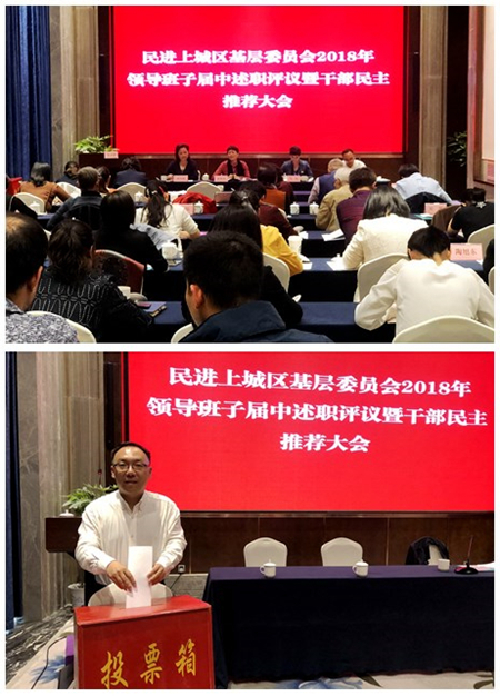 10月18日下午,民进上城区基层委员会2018领导班子届中述职评议暨干部民主推荐大会在赞成宾馆召开。基层委全体班子成员,各支部主委,会员中的区人大代表、政协委员以及骨干会员等参加会议。民进杭州市委会专职副主委谢春凤、秘书长诸剑超、组织处副处长季玲英,中共上城区委统战部副部长马红应邀出席。