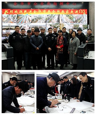 陈政权、张钟康、廖达敏、谢志清、金圣、卢佛之、胡志飞、张智敢、卢爱华(特邀)等金华民进书画家挥毫泼墨,为广大战斗在第一线的公安干警们创作了大量精美的字画和春联,受到了广大干警的热烈欢迎,并受到了市公安局领导的高度评价。