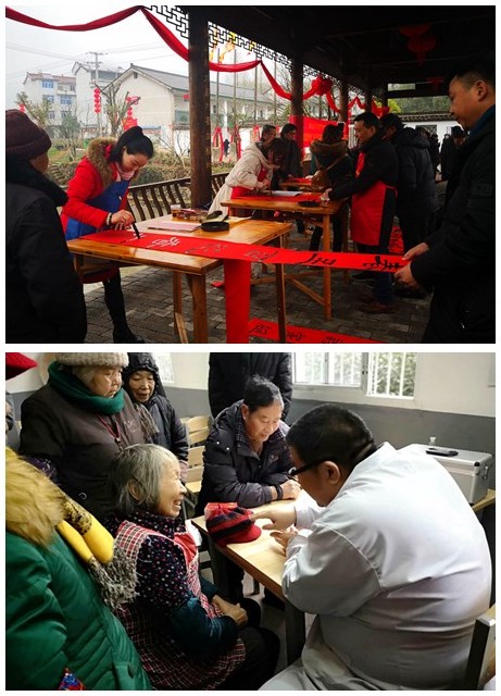 1月16日,民进缙云县总支部联合县文联、移动公司到双溪口乡开展送春联送医送服务活动。