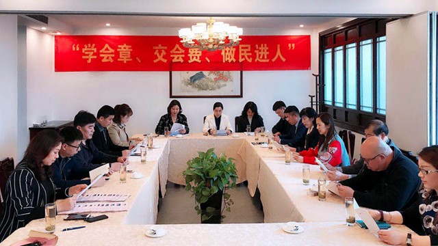 3月26日下午,民进萧山区经济支部开展“学会章、交会费、做民进人”主题活动。区委会专职副主委兼秘书长陈丽君应邀参加,支部主委金霞主持活动。