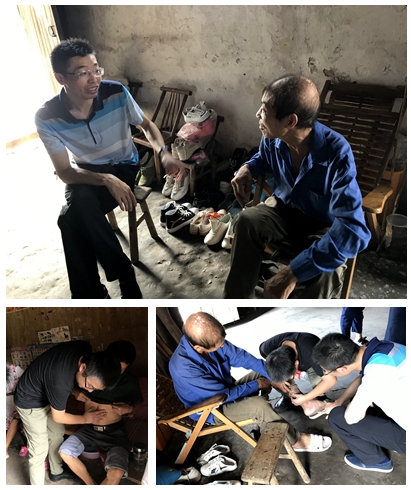 徐某某,刚刚考上职业高中,她父亲因双下肢重度静脉曲张,劳动能力弱。在服务队的帮助下在建德一院进行手术治疗。一进家门,大家首先关注女孩父亲的双足情况,看到原先发黑的皮肤已经逐渐恢复为正常的肤色,大家都松了一口气,对其术后康复进行指导。随即,大家和女孩及父亲进行沟通交流,关注其学习和家庭情况。