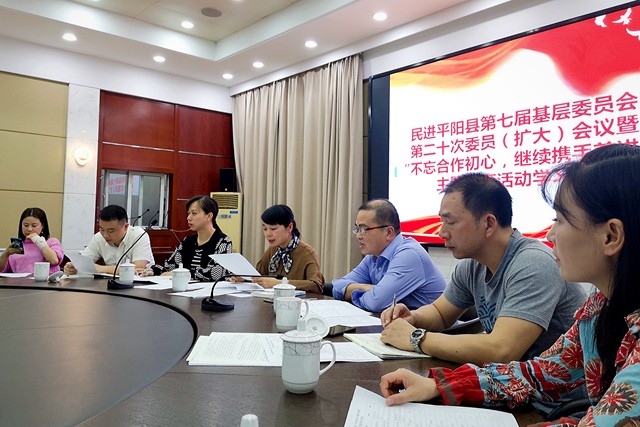10月23日,民进平阳第七届基层委员会第二十次委员(扩大)会议暨“不忘合作初心,继续携手前进”主题教育活动学习会召开。基层委主委汤美和主持会议,副主委蔡振豪、金玲,委员及骨干会员参加会议。