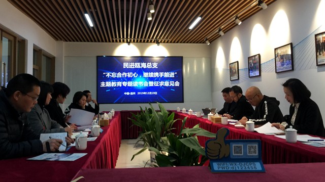 12月19日上午,民进瓯海区总支部在第一支部“开明嘉苑”举行“不忘合作初心,继续携手前进”主题教育专题读书会暨班子民主生活意见征求会。总支市、区两级人大代表、政协委员共12人参加会议。