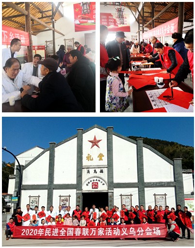 12月29日,民进浙大四院支部、民进义乌市总支部组织医疗专家、书法家驱车两小时,来到大陈镇大畈村文化礼堂,开展“庆元旦 迎新春”送医疗送文化下乡活动,为基层百姓送去健康祝福,带去了喜乐年味。民进中央委员、浙大四院感染科陈亚岗教授,民进金华市委会副主委滕惠芳,中共义乌市委统战部党派科科长万水林,大陈镇党委委员陈兴弟,民进浙大四院支部主委邢如新,民进义乌市总支部主委陈永福等带领38名民进会员参加活动。