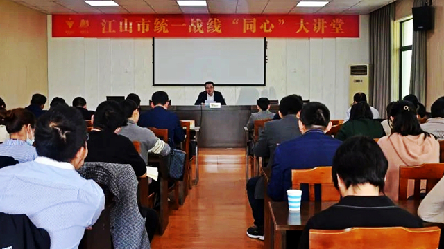 4月10日下午,中共江山市委统战部召开全市各民主党派、知联会、新联会专题学习会,传达学习习近平总书记在浙江考察时的重要讲话精神以及省委常委扩大会议、衢州市委常委扩大会议、江山市委常委扩大会议等有关会议精神。民进江山市总支部主委柴琼颖,副主委毛艳萍、王小芳等参加。