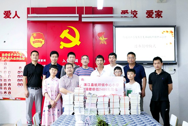 会员们来到浦江杭坪镇中心小学,给学校捐赠了价值2480多元的图书,给乡村学校带去精神食粮,带去民进人的温暖。