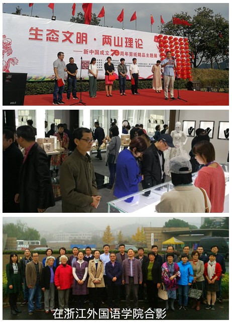 2019年10月,由中共浦江县委统战部主办,浙江外国语学院艺术学院、民进浙江外国语学院支部、民进浦江县总支部、仙华街道联合承办的“生态文明•两山理论”——庆祝新中国成立70周年精品剪纸主题展在浦江仙华街道登高村展出。本次展出的神笔马良、生态文明、两山理论和民俗风情四大主题共一百幅剪纸作品,是浙江外国语学院艺术学院钱海琴副教授组织带领艺术专业学生深入登高村等地体验生活后创作的。展览结束以后,以登高村和马良故事为创作背景的25幅剪纸作品捐赠给仙华街道办事处,为推进浦江文化艺术研学旅游发展,助推浦江乡村文化振兴发挥了重要作用。