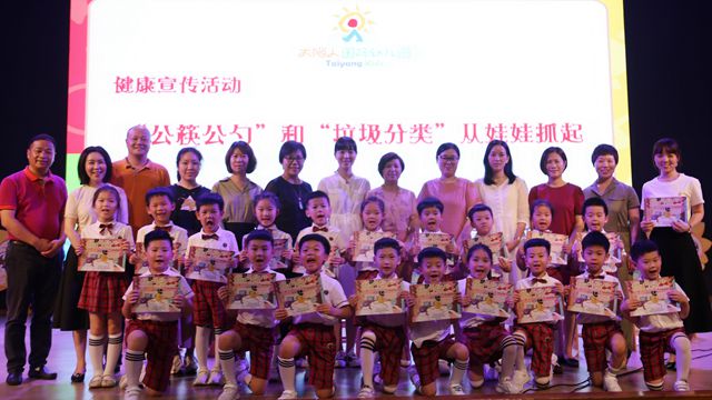 6月18日上午,由苍南县政协、苍南县妇联、民进苍南县基层委联合主办,苍南县(海西)太阳人国际幼儿园、苍南文明在线承办的“垃圾分类”大手拉小手、“公筷公勺”小手牵大手环保健康宣传活动在太阳人国际幼儿园艺术厅举行。苍南县政协主席林森森,苍南县政协副主席、民进苍南县基层委主委傅美丹,苍南县妇联主席胡静,民进苍南县基层委副主委谢长庆等参加活动。
