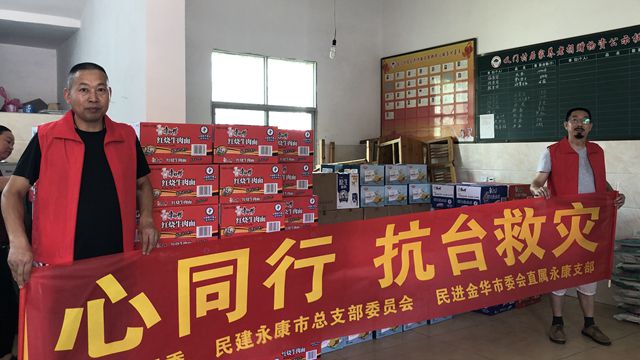 8月7日上午,民进金华市直属永康支部赴永康市西溪镇进行慰问,支部副主委黄永远和会员章洪广代表支部向当地村民送上一万元的牛奶、饼干等生活物资。