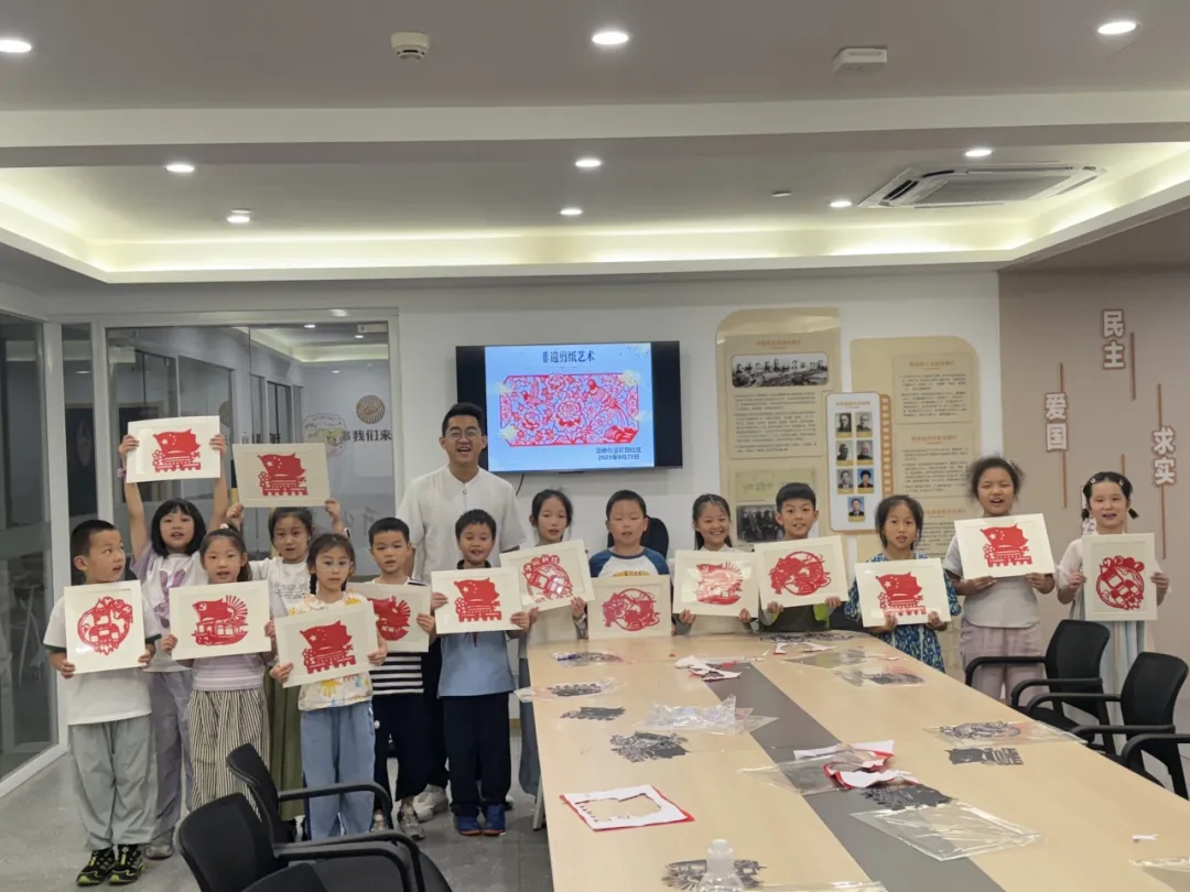9月28日下午,民进上城区基层委员会在“民进之家”开展“非遗剪纸迎国庆公益课堂”活动,近20名学生参与。
