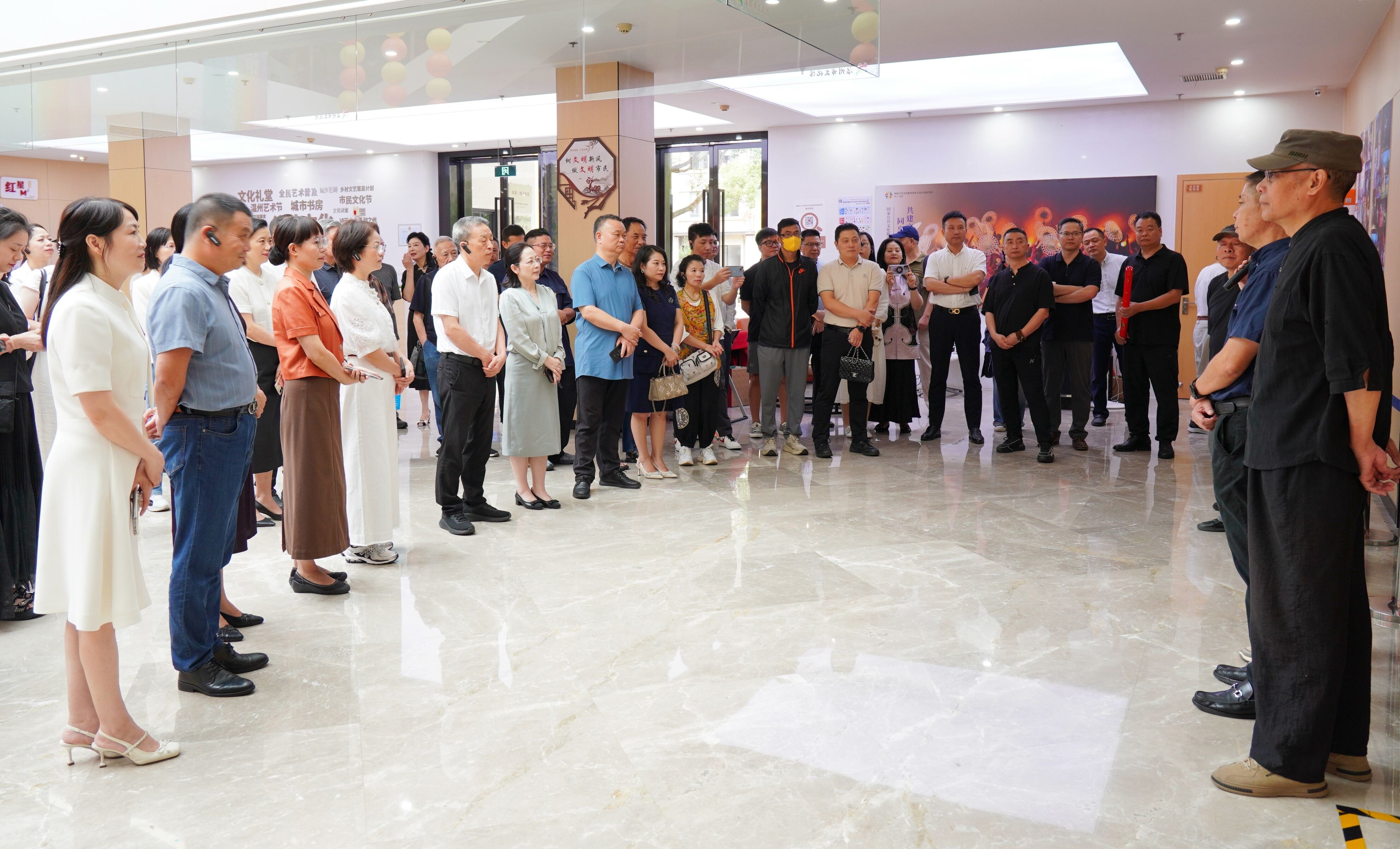杨晓燕宣布书画展正式开幕。随后,与会领导与嘉宾步入展厅,在民进志愿讲解员马炯、杨晓媚、郑海鸥、刘慧、谢陈啦的介绍下,参观了展览。大家不时驻足欣赏,与创作者交流互动,探讨作品背后的创作理念与艺术内涵,现场气氛热烈,展览广受好评。