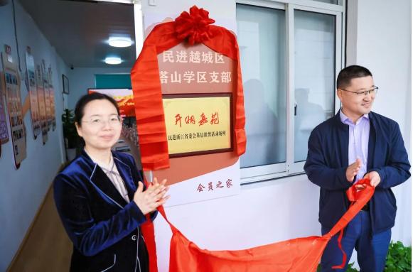 周玲玲、蒋华卫共同为民进塔山学区支部“开明嘉苑”揭牌,标志着支部正式完成了活动场地的迭代升级。