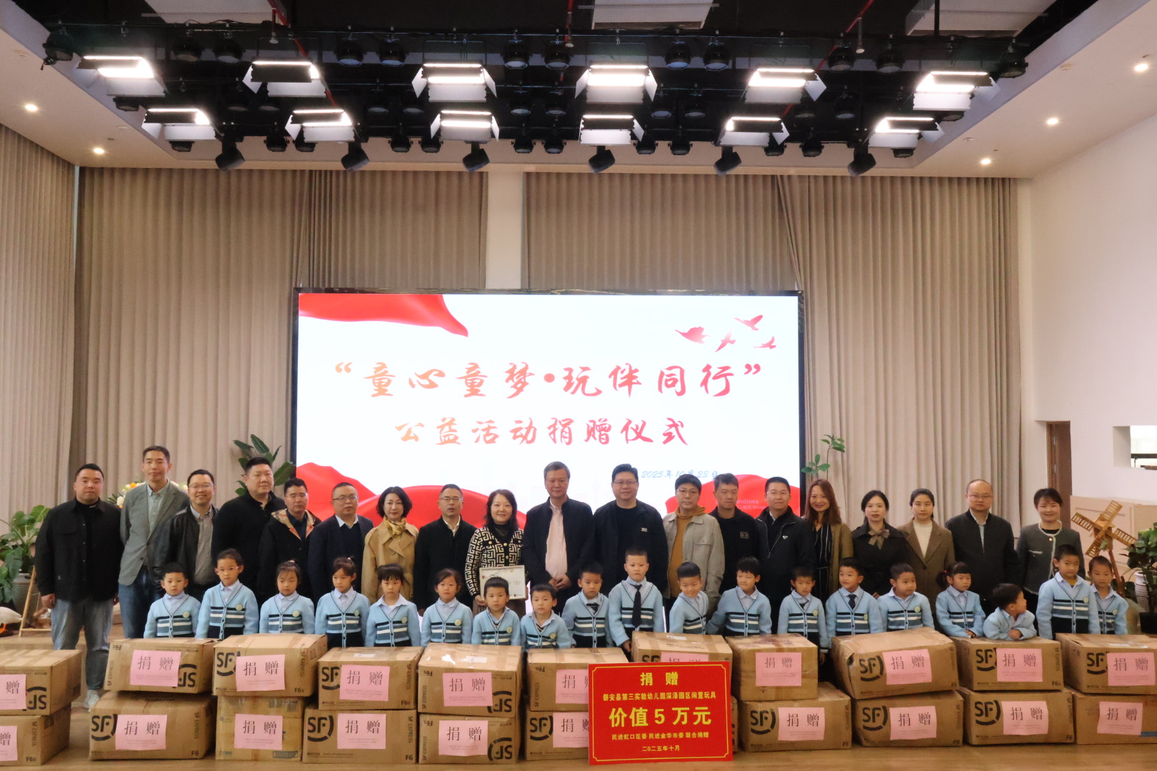 23日上午,“童心童梦·玩伴同行”公益玩具捐赠仪式在磐安县第三实验幼儿园温馨举行。民进虹口区委联合民进金华市委会向该园捐赠了1000余件玩具。仪式由徐松青主持,磐安县委统战部、县教育局相关负责同志到场见证。两地民进领导分别致辞,表达了对磐安幼教事业的深切关注。幼儿园负责人代表全体师生致谢,孩子们也以亲手绘制的图画回应这份温暖。