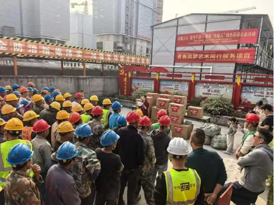 11月1日,“衣暖人心,爱传千里”——青年“衣家人”绿色环保公益活动捐赠仪式在浙江银莱建设有限公司建筑项目工地举行,为城市建设者们送去了三百多套由杭州大学生捐赠的军训服。民进杭州市中学教育联合支部主委吴建主持活动,并为建筑工人们带来了诗歌朗诵《迷彩的旅程》。