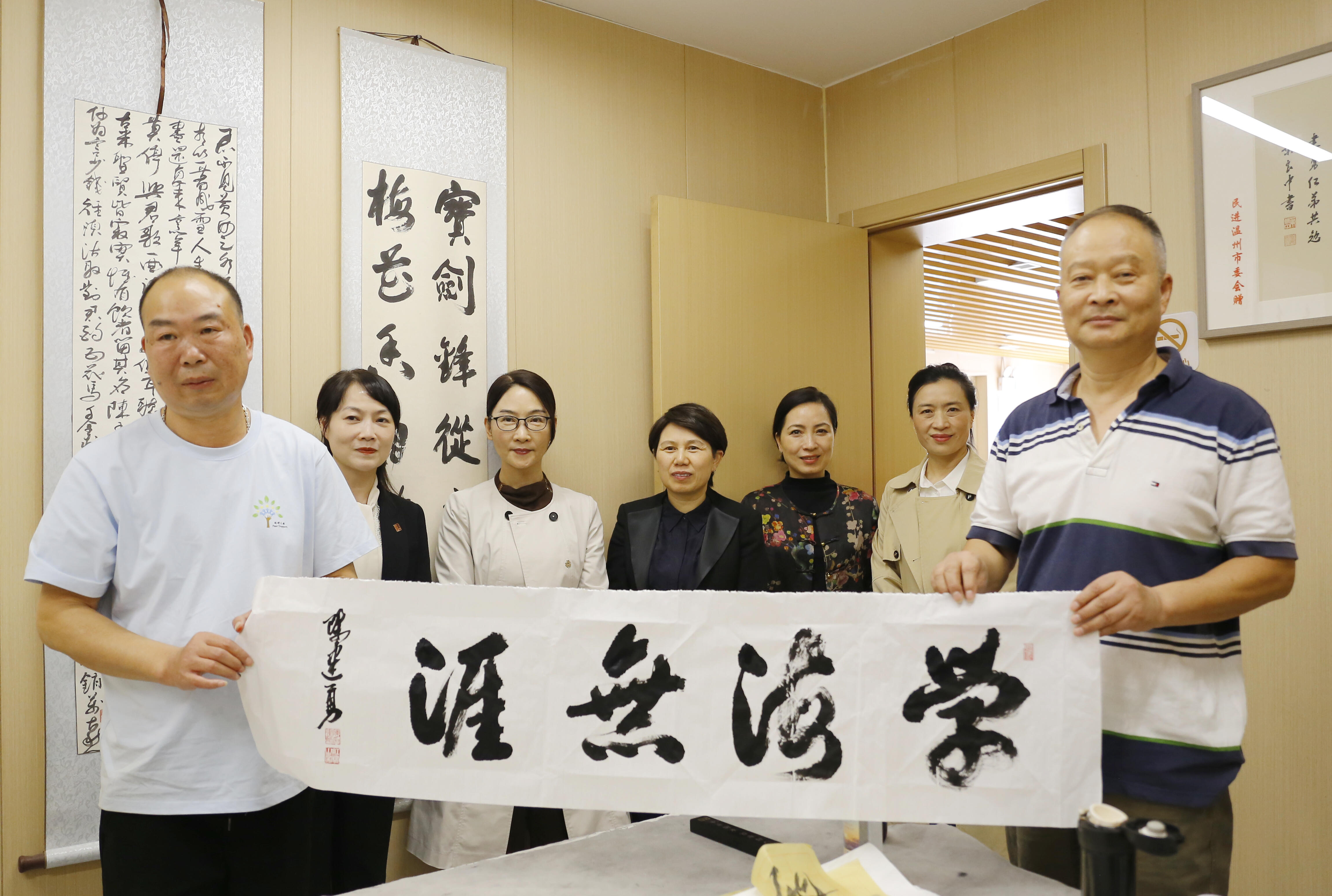 在书法室,叶良中介绍了陈建勇的成长历程。在民进市委会的长期关怀与老师的悉心指导下,陈建勇已从一名受助学员,成长为瓯海区书协会员和社区书法教师,实现了从“受助”到“助人”的蝶变。现场,陈建勇挥毫泼墨,展示学习成果。王安静在观摩后,对市委会的扎实工作给予充分肯定,称赞市委会“实实在在做帮扶,真真切切送温暖”。