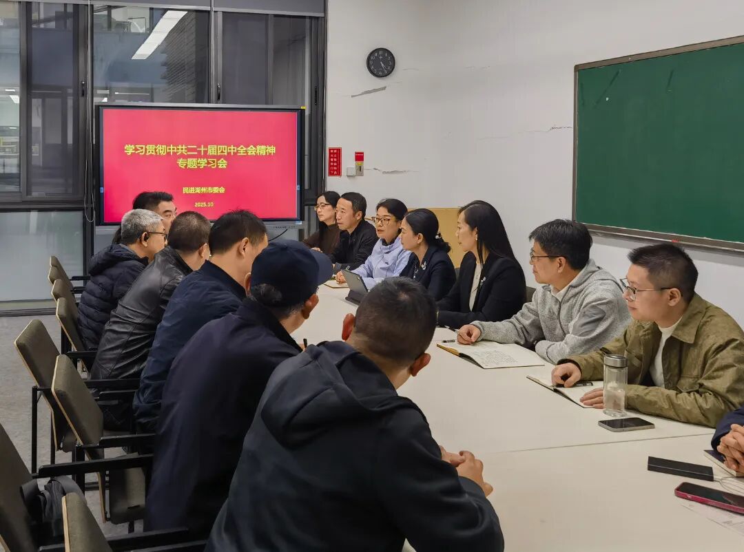 10月30日下午,民进湖州市委会召开专题会议传达学习中共二十届四中全会精神。市政协副主席、民进市委会主委李红主持并讲话,市委会副主委陈舟艳、市委委员、基层组织主要负责人及市政协民进界别委员等参加。