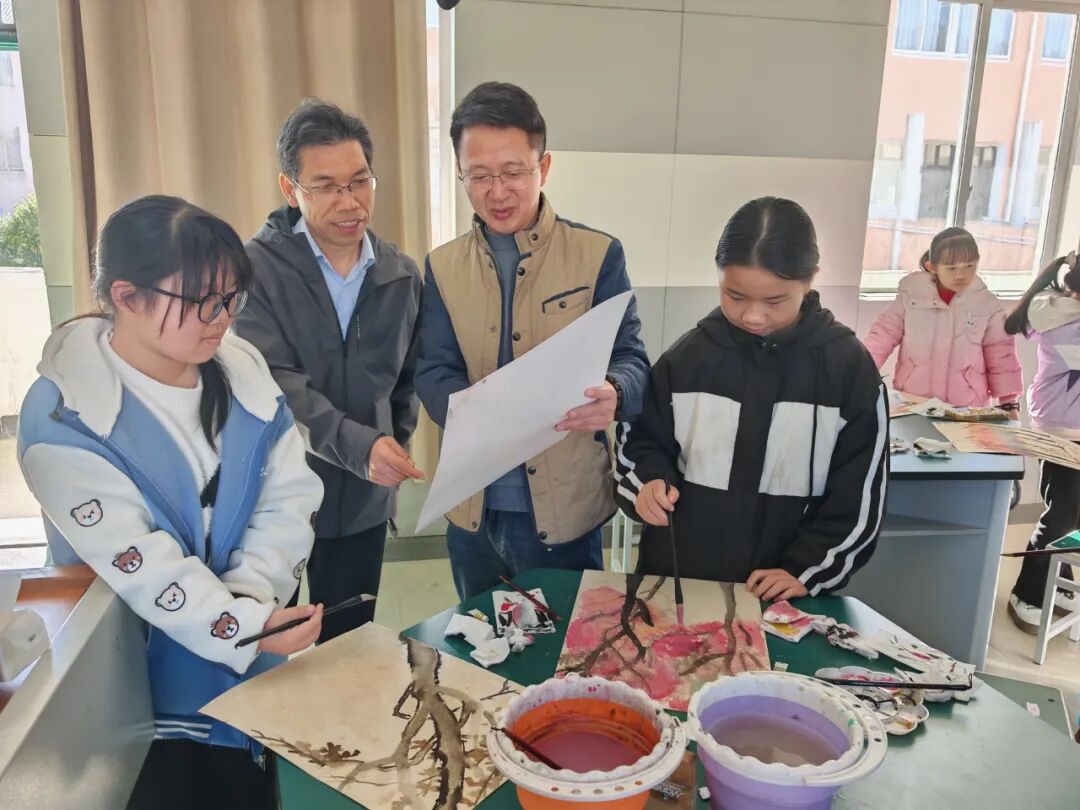 支部会员和春天里公益助学团志愿者们在上垟中心校开展美术、书法、篮球等公益支教课程。