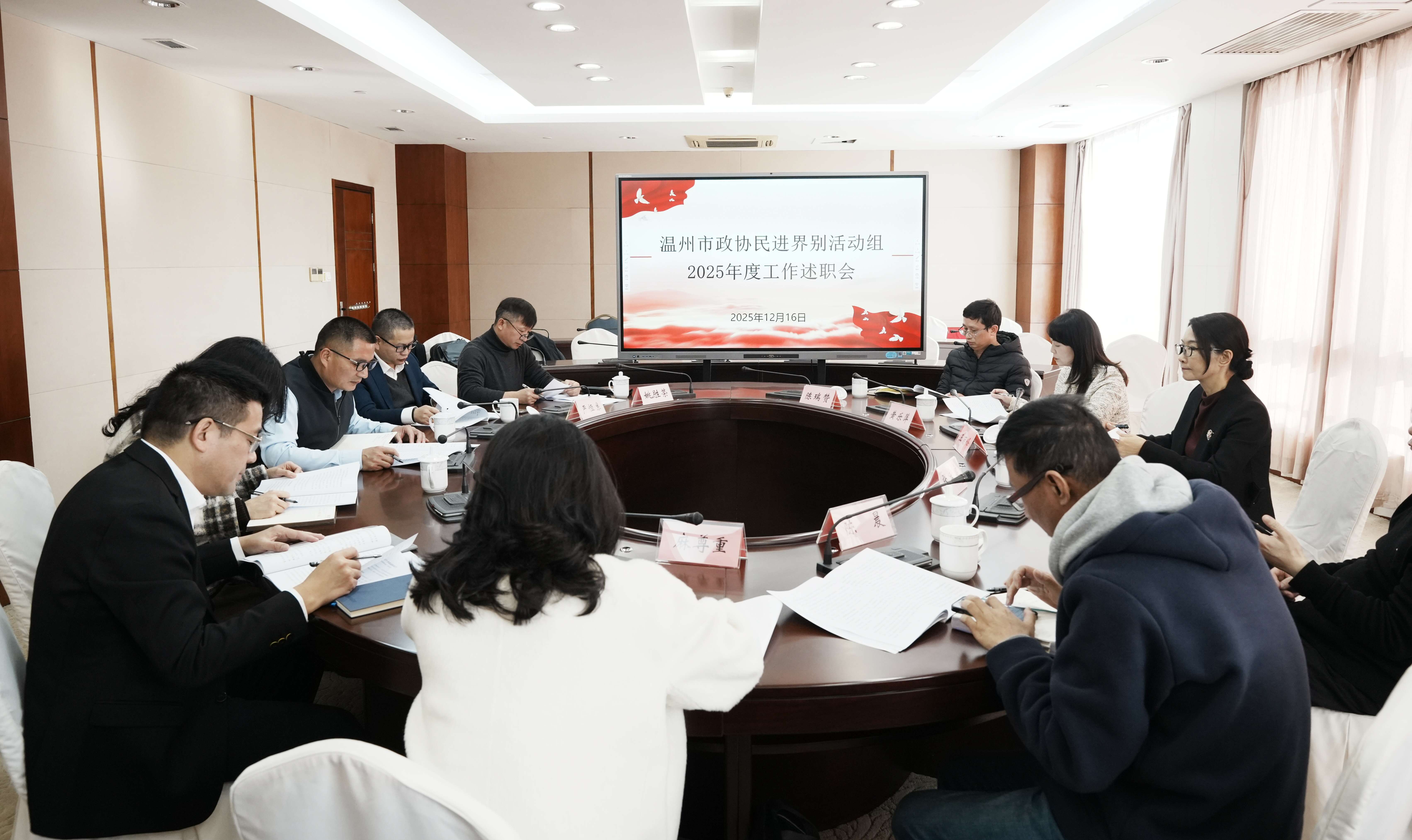 12月16日下午,温州市政协民进界别组召开2025年度工作述职会。市政协副主席、民进市委会主委王丽峰出席并讲话,市政协副秘书长、民进界别组组长、民进市委会专职副主委黄乐萍主持会议。市政协教科卫体委员会副主任张宏良应邀到会指导。
