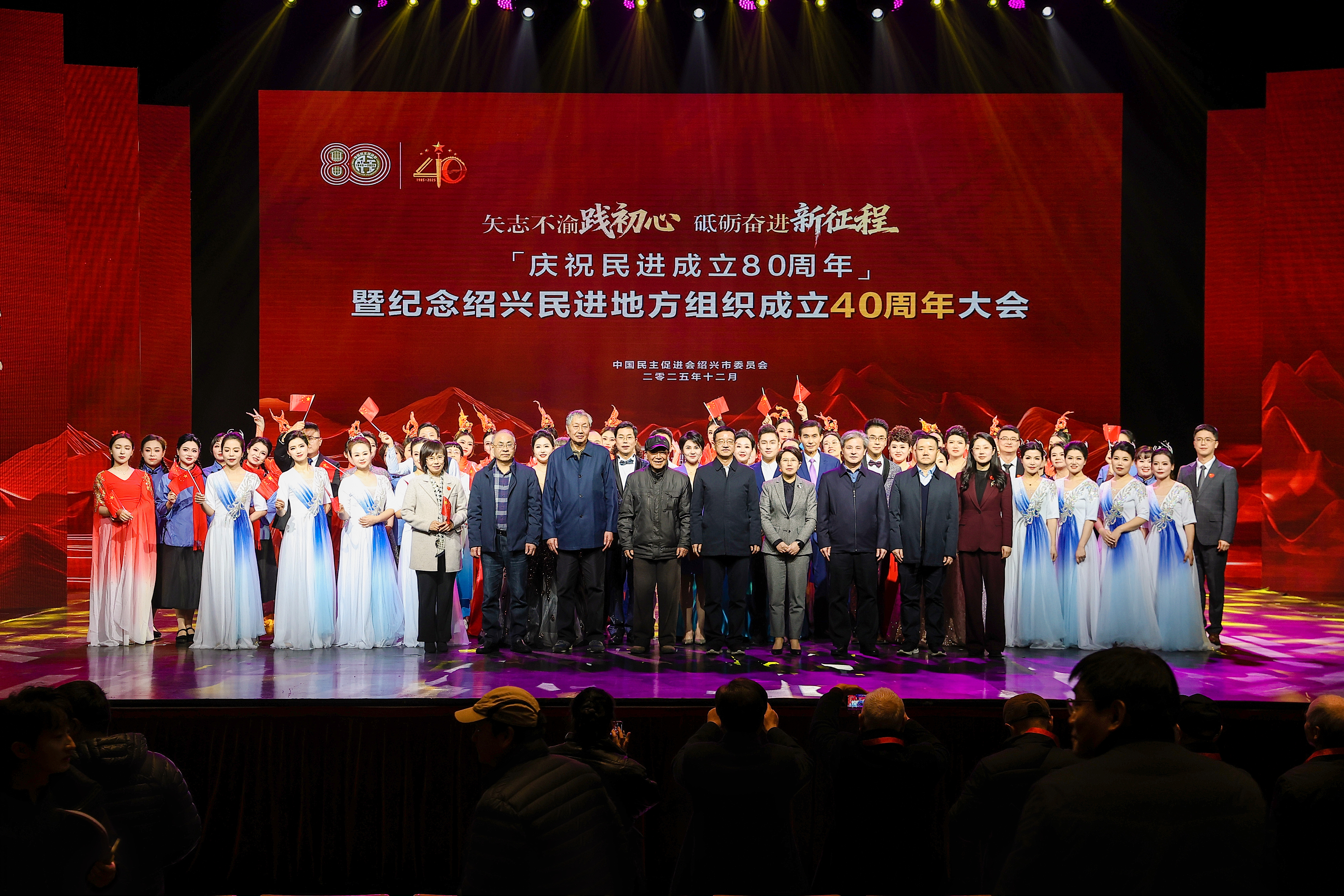 冬日暖阳映初心,薪火相传启新程。12 月 22 日下午,矢志不渝践初心、砥砺奋进新征程——庆祝民进成立 80 周年暨纪念绍兴民进地方组织成立 40 周年大会在绍兴市文化馆隆重举行。民进浙江省委会专职副主委王安静,中共绍兴市委常委、统战部部长陈伟军,绍兴市政协副主席、民建绍兴市委会主委陈德洪,绍兴市政协副主席、民进绍兴市委会主委华小洋,绍兴市委统战部常务副部长单滨新等领导出席大会。