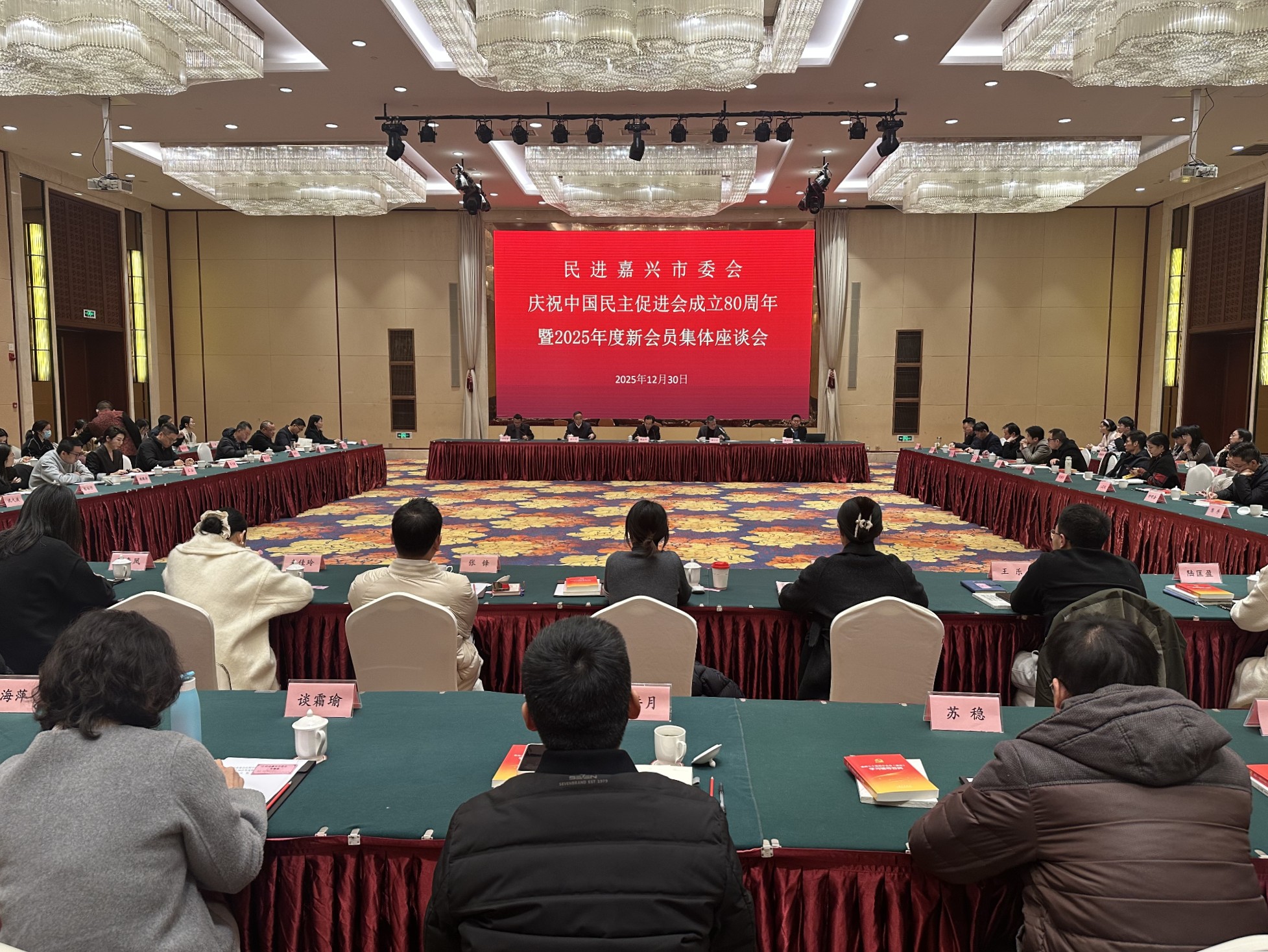 12月30日,民进嘉兴市委会庆祝中国民主促进会成立80周年暨2025年度新会员集体座谈会召开。嘉兴市政协副主席、民进嘉兴市委会主委薛佳平,市委会副主委顾云祥、彭文利、熊国红出席座谈会。