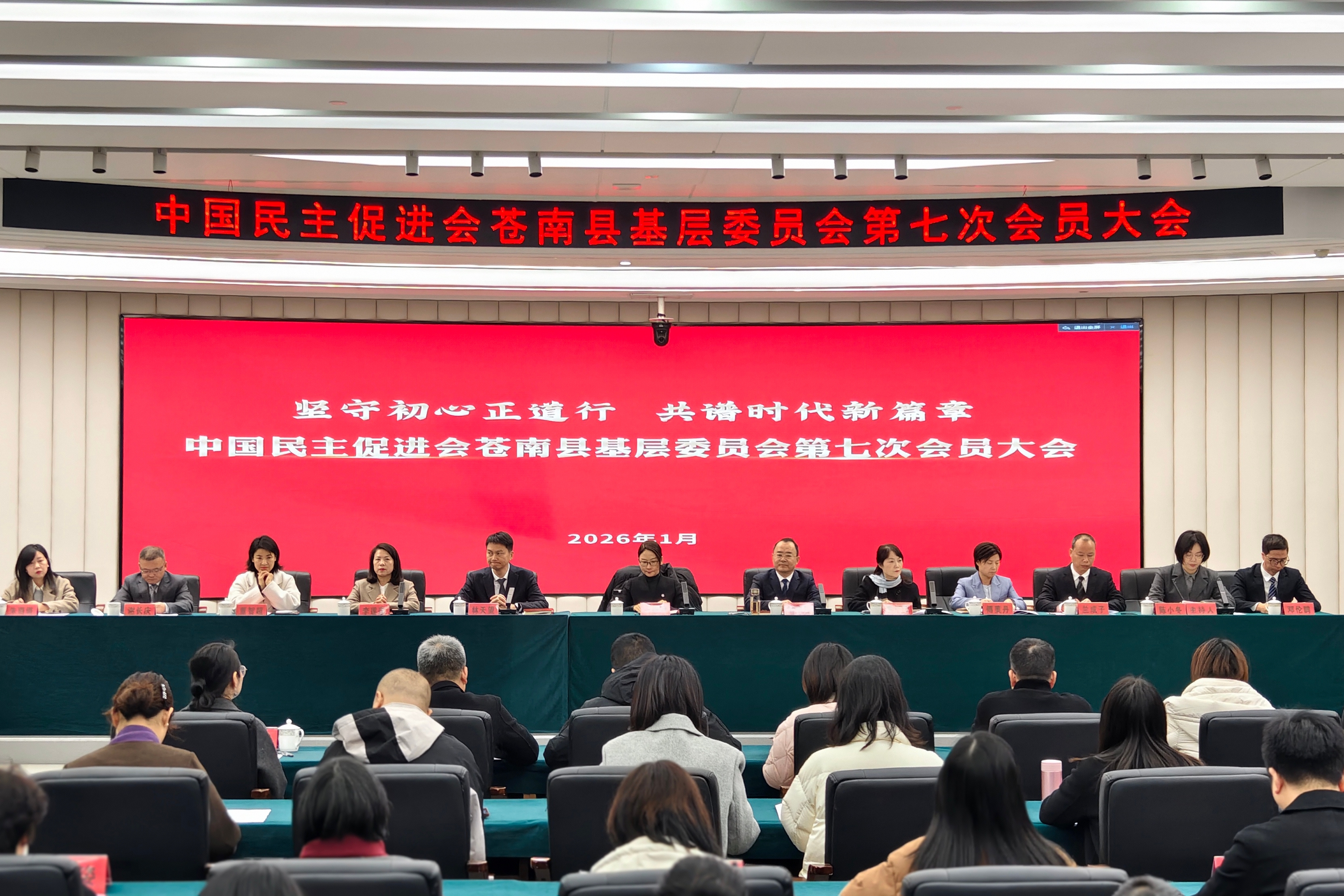 1月7日上午,民进苍南县基层委员会召开第七次会员大会。市政协副主席、民进市委会主委王丽峰,中共苍南县委副书记周建强,苍南县委常委、统战部部长林天望,民进市委会专职副主委黄乐萍,苍南县副县长李莲莲,苍南县政协副主席、民进苍南县基层委主委傅美丹,苍南县政协副主席、苍南县知联会会长董智超,苍南县委统战部副部长兰成子等出席会议。苍南县各兄弟民主党派、统战团体、灵溪镇委以及苍南民进对口联系单位代表到会祝贺。