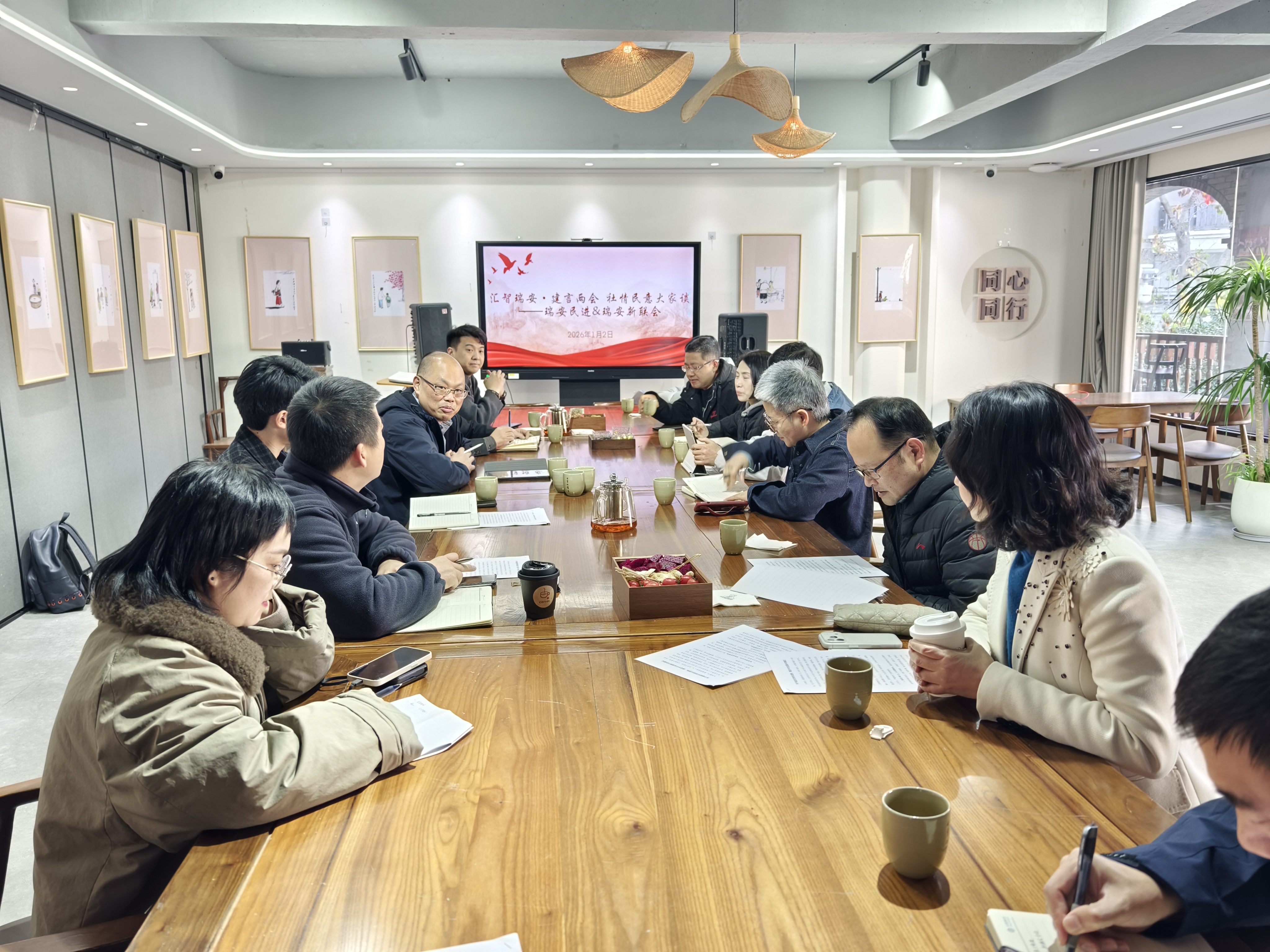 为精准把握2026年参政议政工作重点,提升履职实效,1月2日,民进瑞安市基层委员会联合瑞安市新联会举办“信息大家谈”活动。瑞安市政协提案委副主任苏立胜应邀到会指导,民进瑞安市基层委员会副主委金文钦、陈勇,瑞安市新联会会长吴云等10余名信息骨干齐聚一堂,围绕年度提案谋划与社情民意信息工作深入交流、共献良策。活动由瑞安市新联会副会长陈国权主持。