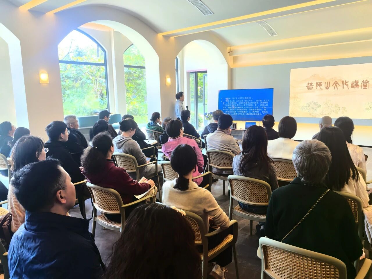 分享会上,浙江海洋大学教授、舟山文史馆馆员倪浓水老师以普陀山文化发展的三大历史节点为核心,依托详实的文史资料,系统梳理普陀山文化千年发展脉络,深度解读各历史阶段文化特征与核心内涵。讲解深入浅出、通俗易懂,将厚重的本土历史文化知识娓娓道来,带领现场听众沉浸式探寻普陀山历史底蕴,感受舟山本土人文魅力。参会人员静心聆听、认真交流,在文史分享中深化了对家乡文化的认知,现场学习氛围浓厚。